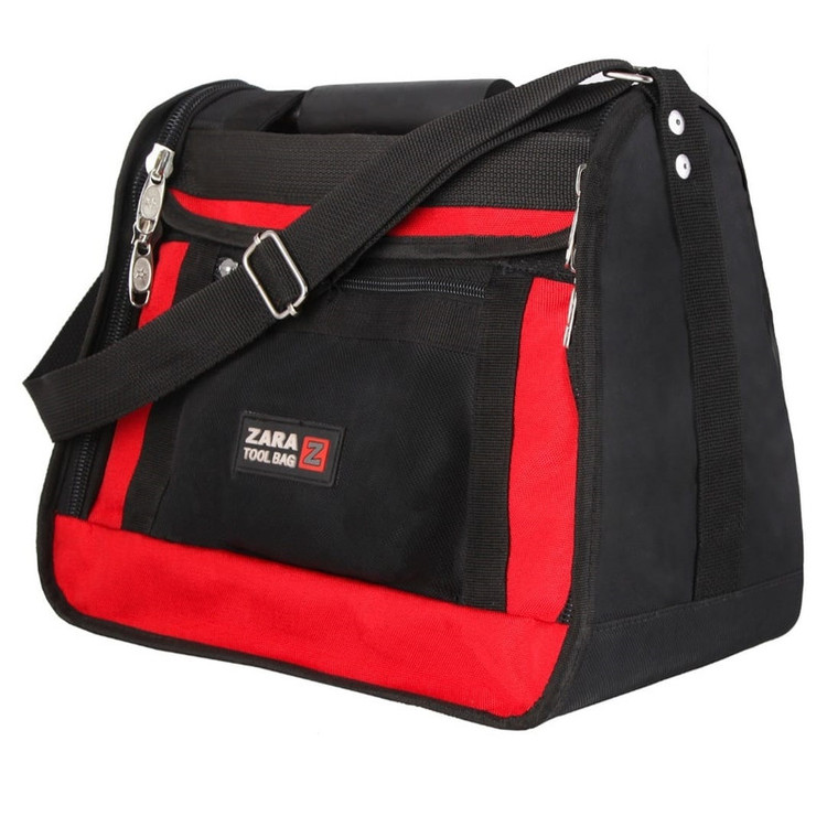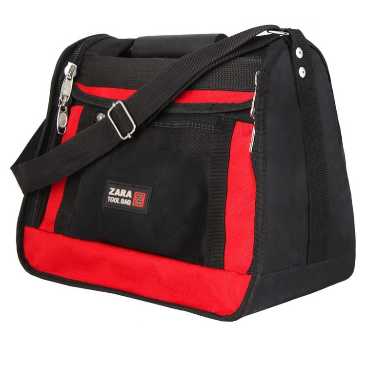 کیف ابزار زارا مدل 114 یک الگوی حرفه ای و جهانی در صنعت کیف ابزار می باشد. استفاده از دسته فلزی در طراحی مدل 114 باعث مقاومت قابل توجه این نوع کیف گردیده است. نکته قابل توجه در طراحی و ساخت این کیف پارتیشن بندی بسیار زیبا در قسمت داخلی و در قسمتهای جانبی می باشد. استفاده از برزنت دولایه و زیپ پلاستیکی با کیفیت باعث مقاومت بدنه و قابلیت شستشوی آسان گردیده است. استفاده از بند برزنتی مقاوم و یراق آلات با کیفیت، حمل این نوع کیف را بصورت دوشی را نیز فراهم می سازد. مدل 114 زارا با ابعاد طول ، عرض ، ارتفاع به ترتیب 35-20-30 سانت عرضه شده است. تعدد جیبهای داخلی و خارجی در این نوع کیف از دیگر مزایای این نوع کیف ابزار می باشد. پیشنهاد کیف ابزار زارا مدل 114 جهت فعالیتهای حرفه ای خدماتی و صنعتی می باشد.
