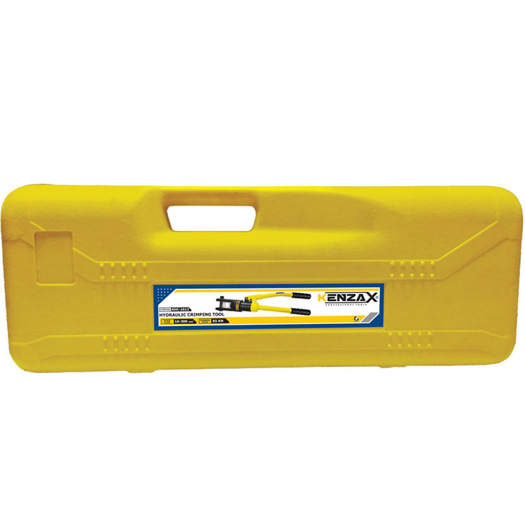 پرس کابلشو اﺑﺰاری اﺳﺖ ﺑﺮای اﯾﺠﺎد ﯾﮏ اﺗﺼﺎل ﻣﺤﮑﻢ و ﻣﻘﺎوم ﺑﯿﻦ اﺗﺼﺎﻻت ﺑﺮﻗﯽ و ﻫﺎدی ﺑﺮق، ﮐﻪ اﯾﻦ ﮐﺎر را در ﮐﻤﺘﺮﯾﻦ زﻣﺎن ﻣﻤﮑﻦ و ﺑﻬﺘﺮﯾﻦ ﺷﺮاﯾﻂ ﺑﺮای اﺗﺼﺎل ﻫﺎدی اﻧﺠﺎم ﻣﯽ دﻫﺪ. ابزار پرس هیدرولیک کابلشو کنزاکس KHC-1613 جهت نصب اتصالات کابلشو /رابط مسی از سایز (سطح مقطع) 10 الی 300 میلیمتر مربع به کابل، مورد استفاده قرار می گیرد. در ابزار پرس هیدورلیک کابلشو، از روغن جهت انتقال نیروی مکانیکی دست اپراتور به اجزاء متحرک ابزار (مانند شفت و پیستون) اسـتفاده می گردد. ابزار در جعبه ای قفل شـو از جنس پلاستیـک سـخت، به همراه 12 عدد قالب پرس در سایز های 10، 16، 25، 32، 50، 70، 95، 120، 240،185،150، 300 عرضــه می گردد.