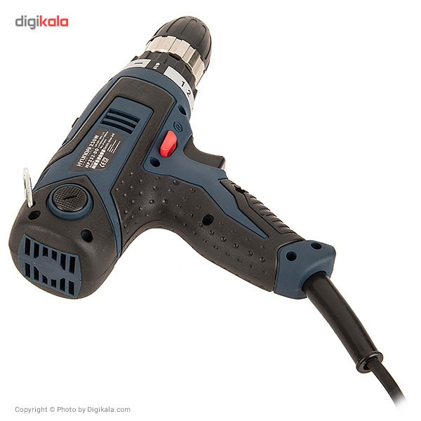 محصولی که مشاهده میکنید دریل پیچگوشتی مدل(HP232-DD) و از تولیدات شرکت «هیوندای» (Hyundai) است. این دریل از دو حالت کارکرد بهره میبرد. یکی حالت دور پایین، که سرعت گردشی برابر با صفر تا 450 دوربردقیقه دارد و مناسب استفاده بهعنوان پیچگوشتی بوده و یکی حالت صفر تا 1500 دوربردقیقه که برای استفاده بهعنوان دریل، قابل استفاده است. این دریل 230 وات توان دارد که با این میزان توان، برای استفاده کارهای روزمره و معمولی کاربرد دارد. وزن کم و ابعاد مناسب این دریل مزیتی است که این امکان را بهکاربر میدهد تا دریل را بهراحتی دردست بگیرد. از دیگر ویژگیهای این دریل میتوان به قابلیت چپگرد و راستگرد بودن آن اشاره کرد که بسته بهنوع کار، میتوان آن را روی وضعیت دلخواه قرار داد. شرکت هیوندای در طراحی این دریل از یک سه نظام 10 میلیمتری استفاده کرده که این قابلیت را به دریل میدهد تا از آن بتوان برای سوراخکاریهای با همین قطر در فلزات استفاده کرد. همچنین این دریل از گیربکسی دوضعیتی بهره میبرد که قابلیت تنظیم گشتاور در شانزده حالت مجزا را دارد.