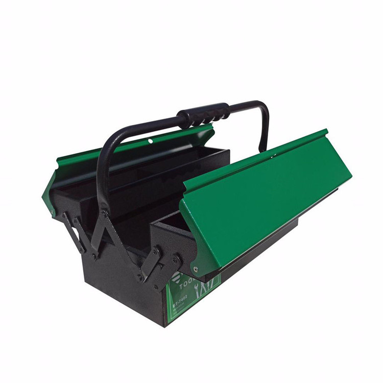 این محصول جعبه ابزار فلزی 40 سانتیمتر 2 طبقه براوو می باشد. این محصول از ورق فولادی ضخیم و مقاوم و همچنین ضد زنگ ساخته شده است. برای مقاومت بالای محصول در برابر خط و خش و همچنین زیبایی جعبه ابزار از رنگ چرمی الکترو استاتیک کوره ای بعنوان روکش ورق فولادی بدنه استفاده شده است. همچنین در اتصالات طبقات جعبه و درب و دسته جعبه ابزار پرچ های فولادی به کار برده شده است تا مقاومت بالایی برایی جابجایی جعبه و باز و بست نمودن آن داشته باشد. طراحی جعبه ابزار فلزی براوو کاملا مهندسی شده و دارای کارایی بالا نسبت به فضای آن می باشد. در قسمت وسط دسته از یک دستگیره پلاستیکی از جنس ABS با طراحی ارگونومیک جهت حمل آسان استفاده شده است.