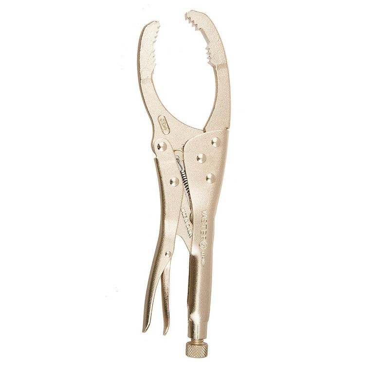 انبرها انواع مختلفی دارند که در این بین انبر قفلی بهدلیل نوع طراحی و ساختاری که دارد از جایگاه ویژهای برخوردار است. از انبرهای قفلی برای نگه داشتن قطعات بهشکل محکم استفاده میشود. قدرت بالای فکهای این ابزار بهلطف مکانیزم قفل شوندهای است که برای آن وجود دارد. محصول فوق نیز از این امر مستثنی نبوده و کاربرد ویژهای دارد. انبر قفلی فوق برای باز کردن فیلتر روغن خودرو مورد استفاده قرار میگیرد. این ابزار را شرکت «واستر» (Vaster) تولید میکند. این شرکت ابزارهای دستی متنوعی دارد که از کیفیت قابل قبولی برخوردارند. انبر قفلی فوق ساختاری فلزی از جنس کروم مولیبدنیوم دارد که موجب بالا رفتن استحکام آن شده است. دهانهی این انبر قفلی را میتوان در بازهای بین 45 تا 130 میلیمتر باز کرد. این محصول طولی برابر 34.5 سانتیمتر دارد. فکهای این انبر حالتی خمیده دارند تا کاربر بتواند بهراحتی از این انبر قفلی برای باز کردن فیلتر روغن استفاده کند.