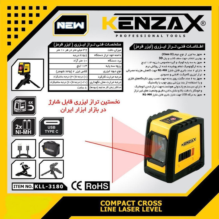 نوع لیزر ابزار: دو خط، کلاس 2
