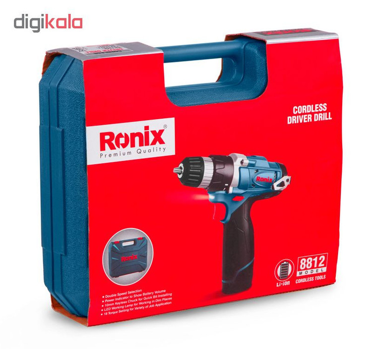 امروزه دریلها و پیچگوشتیهای برقی و شارژی کاربرد بسیار زیادی در صنعت، کارگاهها و حتی منازل دارند. تفاوت اصلی این دو محصول در سرعت گردش آزاد آنها است. در طی چند سال اخیر شرکتها برای پاسخ به نیاز کاربران این دو محصول را باهم ترکیب کردهاند. شما با کمک این ابزار میتوانید از ویژگی دریل و پیچگوشتی بهطور همزمان بهرهمند شوید. دریل پیچگوشتی شارژی «رونیکس» (Ronix) مدل«8812» دارای دو وضعیت در سرعت گردش موتور است. در حالت اول سرعت گردش بین 0-400 دوربردقیقه و در وضعیت 2 سرعت گردش موتور بین 0-1350 دوربردقیقه متغیر است. سرعت پایینتر مناسب پیچگوشتی و دریل کاری سبک بوده درحالیکه سرعت بالاتر بهمنظور دریل کاری با سرعت بالا مورداستفاده قرار میگیرد. گشتاور موتور این محصول در 21 حالت مختلف قابل تنظیم بوده و در بیشترین مقدار به 21 نیوتنمتر میرسد. با کمک قابلیت تنظیم گشتاور میتوانید میزان نیروی وارده به سهنظام را تغییر دهید. سهنظام این دریل 10 میلیمتری، از نوع خودکار است. سیستم گردش چپگرد و راستگرد برای این محصول باعث میشود در حالت پیچگوشتی، بهراحتی پیچها را باز و بسته کنید و در حالت دریل، ورود و خروج مته را با سهولت بیشتری انجام دهید. شرکت رونیکس برای این محصول از باتری لیتیومی استفاده کرده است. شرکت رونیکس سالها است که درزمینهی عرضهی ابزارآلات دستی و برقی فعالیت میکند. این شرکت علاوه بر حفظ کیفیت محصولاتش، آنها را باقیمتی مناسب روانهی بازار میکند.