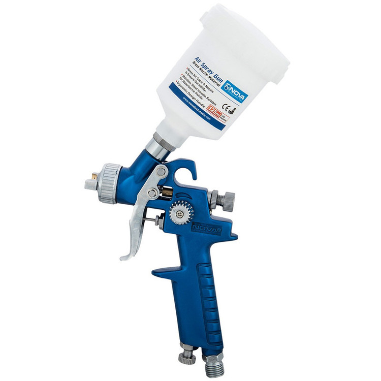 پیستولهی بادی «نووا» (Nova) ابزاری مناسب برای نقاشی و رنگ کاری سطوح مختلف است که قابلیت پاشش رنگ با استفاده از فشار باد را دارد. این مدل که با عنوان (NTS 2706) شناخته میشود وزنی برابر با 330 گرم دارد. برای استفاده از این پیستوله بعد از اتصال قسمت انتهایی آن به کمپرسور باد، رنگ باید داخل مخزن مخصوص که همراه این پیستوله است ریخته شود. این مخزن از جنس پلاستیک ساخته شده و 125 میلیلیتر گنجایش دارد. در قسمت انتهایی این پیستوله یک عدد پیچ تعبیه شده که به کمک آن میتوان میزان هوای ورودی را تنظیم کرد. گفتنی است میزان فشار هوای این پیستوله 43 پی اس آی بوده که این میزان نشان دهنده کیفیت بالای این پیستوله است. یکی از قسمتهای مهم این پیستوله سوزن و نازل آن است که شرکت نووا این قسمت را از جنس استیل ضد زنگ ساخته است. قطر این نازل 0.5 میلیمتر بوده؛ همچنین از یک پیچ تنظیم پهنای پاشش بهره میبرد.