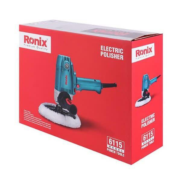 پولیش دیمردار رونیکس مدل 6115 پولیش دیمر دار رونیکس مدل 6115 توسط برق کار می کند و دارای توان 1050 واتی است. این دستگاه دارای قابلیت تنظیم سرعت در 6 حالت می باشد. اندازه قطر صفحه این مدل پولیش، 180 میلی متر است. دستگاه معرفی شده دارای گیربکس صنعتی و بلبرینگ های ضد غبار می باشد. داشتن این ویژگی ها باعث افزایش عمر دستگاه و افزایش عملکرد آن می شود. پولیش دیمر دار تفنگی رونیکس دارای دسته کمکی بوده که این ویژگی باعث تسلط کاربر و کاهش خستگی او می شود. به وسیله دستگاه پولیش می توان انواع سطوح را با سرعت و قدرت زیاد پولیش کاری کرد.