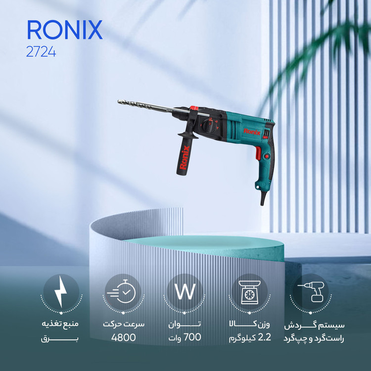 دریل بتن کن 24 میلی متری رونیکس با وزن 2.5 کیلوگرم و توان 700 وات، یکی از بهترین گزینه های برای سوراخکاری های سبک در بتن و انجام امور منازل می باشد. 2724 رونیکس بدلیل قیمت بسیار مناسب در رنج محصولات خانگی قراردارد با این حال برای کارهای صنعتی سبک نیز مورد استفاده قرار می گیرد