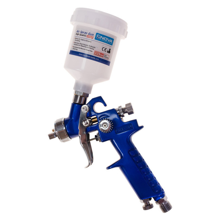 پیستوله یکی از ابزارهای بادی کاربردی در هنگام رنگ کاری است.پیستوله رنگ پاش نووا مدل 2706 یک پیستوله رنگ کاسه رو با سیستم HVLP است که دارای یک کاسه پلاستیکی 125 میلی لیتری است.کلاهک برنجی هوای این دستگاه باعث دوام بیشتر می شود و سوزن و نازل از جنس فولاد زنگ نزن آن را برای پاشش رنگ های پایه آب مناسب نموده است. سایز نازل این دستگاه برابر با 0.5 میلی متر است.این پیستوله رنگ پاش نووا که برای رنگ کاری های ظریف طراحی و ساخته شده است، مجهز به سه عدد تنظیم است. یک پیچ برای تنظیم میزان خروجی رنگ، یک پیچ برای تنظیم پهنای رنگ و پیچ سوم برای تنظیم میزان ورودی باد به پیستوله به کار می رود. سایز ورودی هوای این پیستوله نووا به صورت "G1/4 است. دستهی فلزی ارگونومیک این پیستوله باعث راحتی کار شما می شود و سطح آنودایز شده آن پس از اتمام کار شما، تمیزکاری آسانی به دنبال خواهد داشت.فشار باد کارکردی این پیستوله کاسه رو نووا برابر با 43PSI است و در بسته بندی آن کوپلینگ، آچار و برس قرار داده شده است.