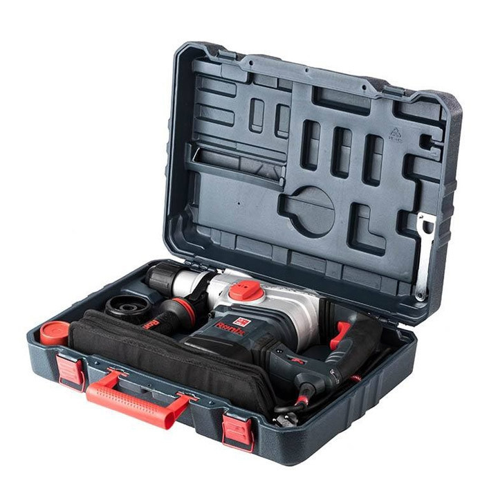 برای ایجاد سوراخهای دقیق یا تخریب مصالحی مانند بتن و سیمان، چه راهکاری بهتر از ترکیب چرخش بیوقفه و ضربههای مداوم به وسیله ابزار پرتوان بتنکن 2740 رونیکس. سیستم ابزارگیرSDS-MAX پنج شیار، قلمهایی با قطر 40 میلیمتر را نگه میدارد تا موتور 1250 وات صنعتی آن با زرهای از آلیاژ شکستناپذیر منیزیوم، ساعات طولانی را به انجام سوراخکاری چکشی یا تخریب بپردازد. ترکیب سیستم بلبرینگ دوبل در محور چرخشی با شاتون و سنبههای ساخته شده از مقاومترین آلیاژها، دقت در سوراخکاری و قدرت در ضربههای مخرب را تا چندبرابر اثربخش کرده است تا دستهگردان 360 درجه ضدلرزش را با زاویه دلخواه در دست بگیرید و با تکیه بر سیستم لرزهگیر AVS، به صورت استوار در سختترین سطوح پیشروی کنید. همچنین بلبرینگهای ضدغبار NSK و اورینگپکینگهای مقاوم در برابر حرارت، دوام این دستگاه را تضمین میکند