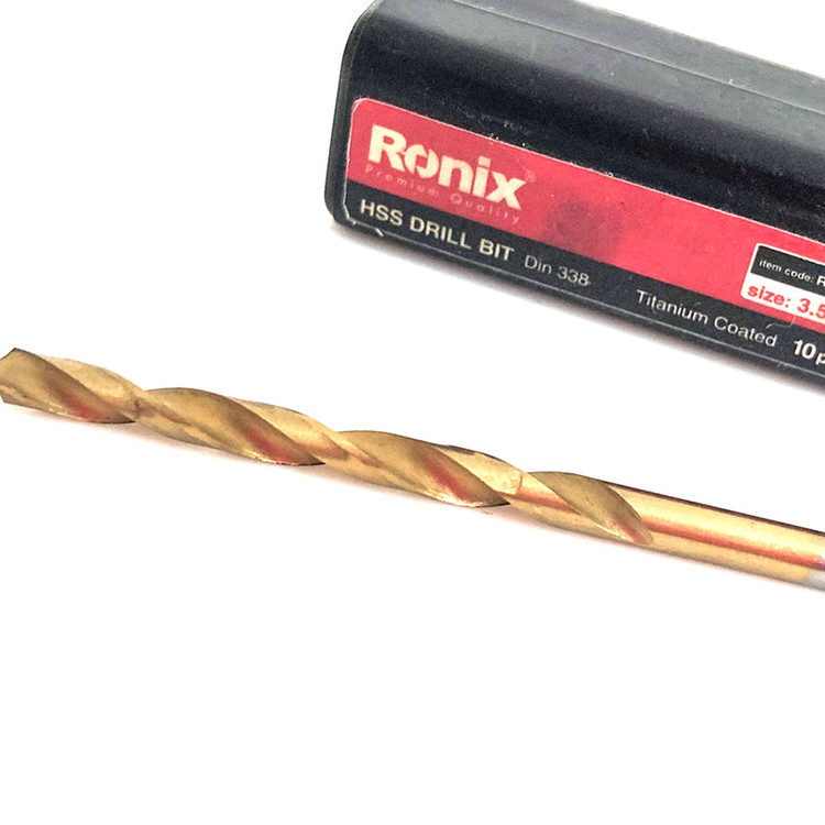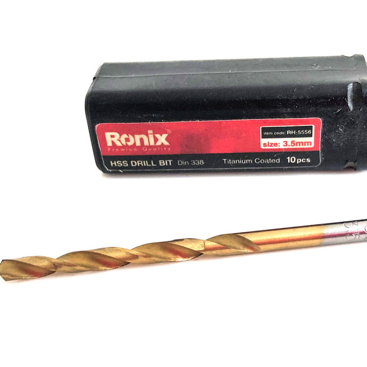 تولید شده با استاندارد DIN 338 آلمان دارای روکش تیتانیوم سایز 3.5 میلیمتر جنس فولاد تندبر (HSS)