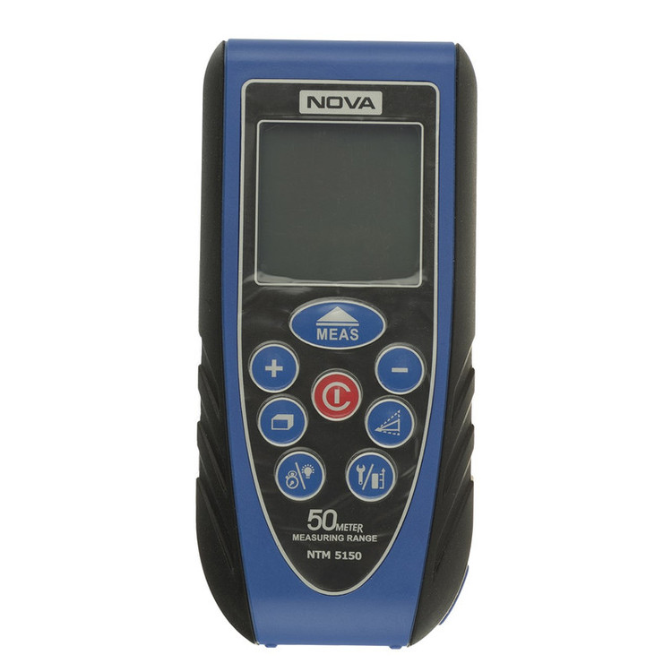 مترها و ترازها از ابزارهای بسیار کاربردی هستند. گاهی اوقات کار با این محصولات با محدودیتهایی همراه است. برای مثال ممکن است کاربر امکان دسترسی و حضور در مکان موردنظر را نداشته باشد. از طرفی دیگر این ابزارها دقت بالایی ندارند و خطای کاربر بر میزان اندازهگیری شده تاثیر گذار است. برای رهایی از چنین مشکلاتی استفاده از متر و ترازهای لیزری گزینهای مناسب است. این محصولات دقت بالایی دارند و قابلیتهای دیگری نظیر انواع محاسبات و ثبت آنها را در اختیار کاربر قرار میدهند. متر و تراز لیزری مدل «NTM-5150» محصولی از شرکت «نووا» (Nova) است. این وسیله قادر است با کمک لیزر نوع کلاس 2 خود، فاصلهای 50 متری را با دقتی بسیار بالا و خطای کم 1.5 میلیمتری اندازهگیری کند. این دستگاه دارای استاندارد IP54 است و در برابر رطوبت و گردوغبار مقاومت قابل قبولی دارد. این محصول میتواند محاسبات بسیار زیادی نظیر جمع و تفریق، محاسبه بر اساس فرمول فیثاغورث و محاسبهی حجم و مساحت را انجام دهد. صفحهی نمایش این متر لیزری سیاهوسفید بود و انرژی موردنیاز متر از طریق باتری تامین میشود. از دیگر مشخصهی این محصول میتوان به وزن آن اشاره کرد. وزن این متری لیزری 135 گرم است و به همراه آن یک کیف برزنتی، پیچگوشتی و باتری عرضه میگردد.