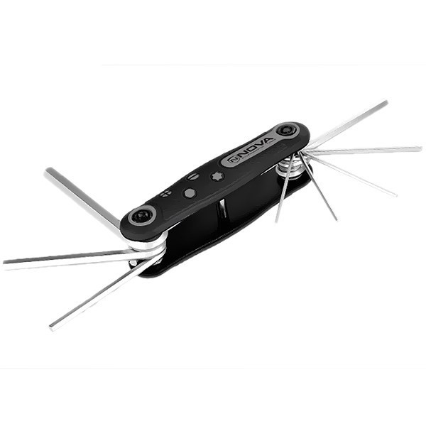 استفاده از آچارهای مختلف، برای باز کردن یا بستن پیچها و مهرهها باعث شده تا شرکتهای تولیدکنندهی ابزار به فکر تولید آچارهایی در ابعاد کوچک و باقابلیت تا شوندگی باشند. شرکت «نووا» (Nova) نمونههای مختلفی از ابزار را با این ویژگی تولید کرده است. مجموعه آچار آلن مدل NTK 1141 یکی از این نمونهها به شمار میآید. این محصول که بهصورت چاقویی باز و بسته میشود، شامل 8 سایز مختلف از آچار آلن است. این 8 آچار شامل سایزهای 1.5 ، 2 ، 2.5، 3، 4، 5 (2 عدد)، 6 و 8 میشود. شرکت سازنده از آلیاژ کروم-وانادیوم برای ساخت این محصول استفاده میکند. این آلیاژ مقاومت بسیار مناسبی در برابر فشار، حرارت، ضربه و زنگزدگی دارد. مجموعه آچار مدل NTK 1141 فضای کمی را در بین ابزارهای شما اشغال میکند و با توجه به افزایش استفاده از سری پیچ آلنی، در بسیاری موارد کاربرد دارد.