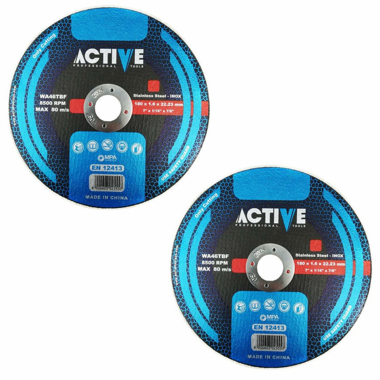 حاوی 2 عدد صفحه برش استیل اکتیو اصلی با قطر 180(فرز بزرگ) و ضخامت 1.6 میلیمتر . مناسب برای برش انواع فلزات آهن ، استیل و... با فرز بزرگ با دور 8500 دور در دقیقه. دارای استاندارد EN12413 . حتما قبل ازشروع استفاده نکات ایمنی مورد نیاز کار با فرز را رعایت کنید.-(دقت بفرمایید مناسب مینی فرز نیست)
