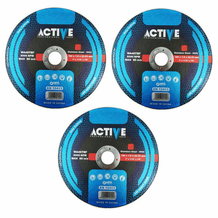 حاوی 3 عدد صفحه برش استیل اکتیو اصلی با قطر 180(فرز بزرگ) و ضخامت 1.6 میلیمتر . مناسب برای برش انواع فلزات آهن ، استیل و... با فرز بزرگ با دور 8500 دور در دقیقه. دارای استاندارد EN12413 . حتما قبل ازشروع استفاده نکات ایمنی مورد نیاز کار با فرز را رعایت کنید.-(دقت بفرمایید مناسب مینی فرز نیست)