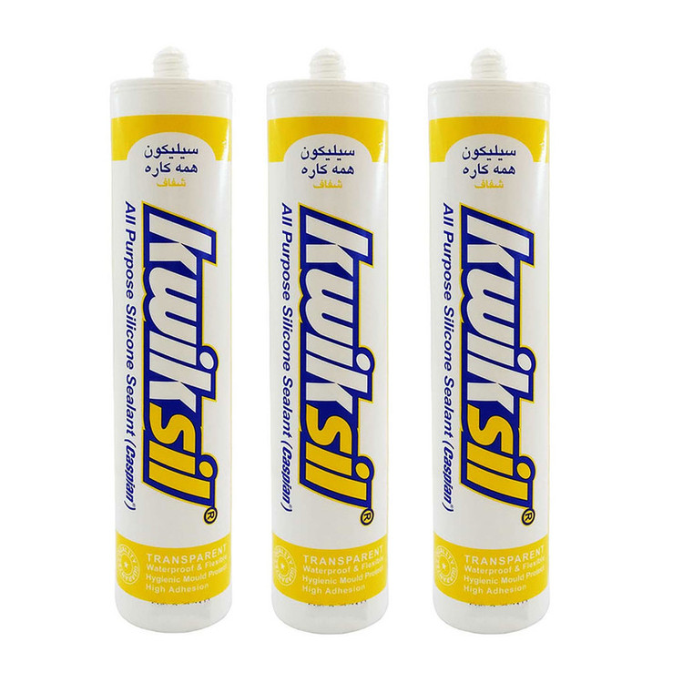 چسب سیلیکون کاسپین مدل shafaf حجم 300 میلی لیتر مجموعه 3 عددی