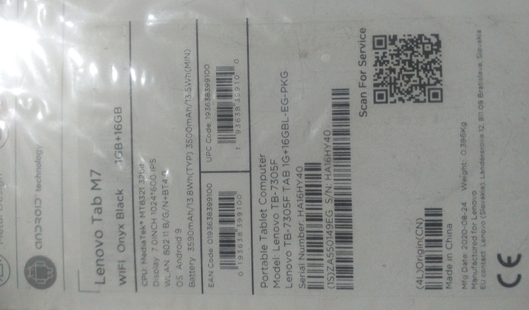 تبلت لنوو Tabm7 مدل TB-7305F با کارتن نمونه فروشگاه در حد نو