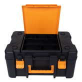 جعبه اینورتر مهر پلاستیک از جنس پلاستیک خشک مرغوب تولید شده است که مقاومت بسیار بالایی دارد و برای حمل انواع اینورتر مناسب و کاراست.مرتب ساز 6 خانهای تعبیه شده بر روی در جعبه، که یکی از ویژگی های برتر این جعبه است، می تواند محل خوبی برای گذاشتن پیچ و رولپلاک ، آچار دریل و فرز و سایر ابزارها و وسایل مورد نیاز همراه شما باشد.دو عدد قفل پلاستیکی مستحکم بر روی این جعبه تعبیه شده است و شما با خیالی آسوده و بدون ترس از باز شدن جعبه ، میتوانید دستگاه و ابزارهای مورد نیاز خود را در آن قرار دهید.دستهای نیز به طول 16 سانتیمتر برای حمل راحت تر جعبه بر روی آن طراحی شده است.این جعبه ی جادار و با کیفیت ، به ابعاد 20x30x43 سانتی متر و با وزن 2150 گرم در کشور ایران ساخته شده است.