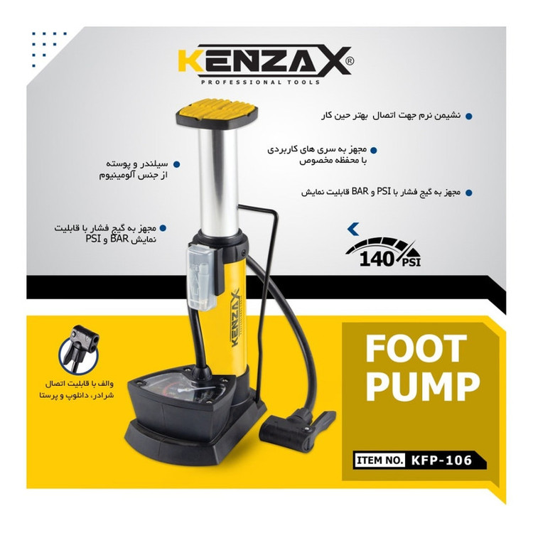 نشیمن نرم جهت اتصال بهتر حین کار وزن فوق العاده سبک برای حمل آسان مجهز به گیج فشار با قابلیت نمایش BAR و PSI مجهز به سری های کاربردی با محفظه مخصوص