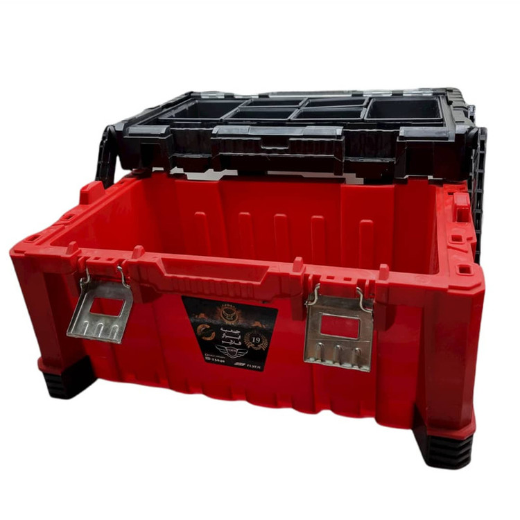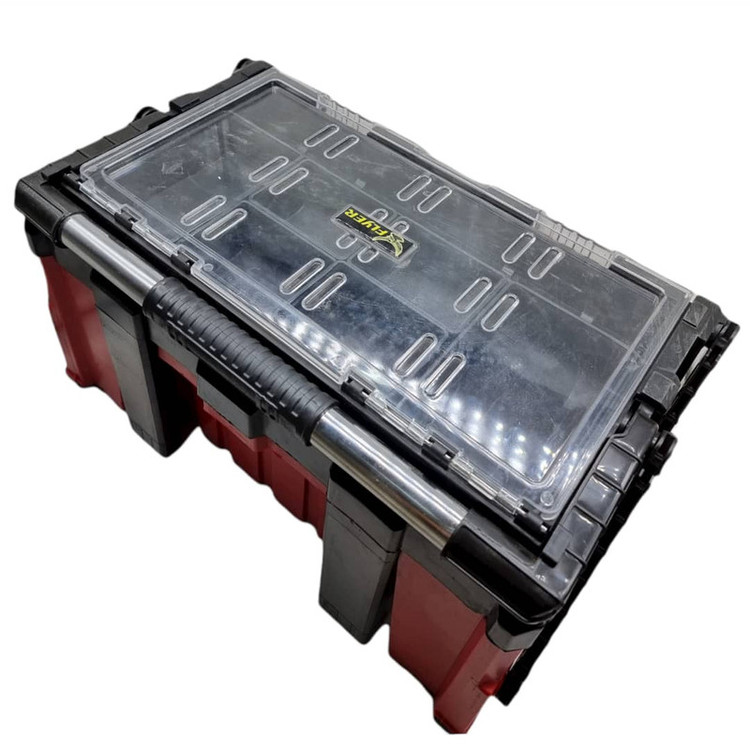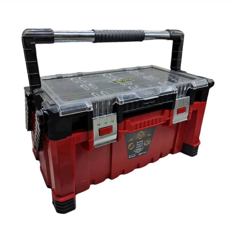 جنس بدنه : پلاستیک نشکن دارای 2 عدد قفل فلزی با دوام بالا شامل هفت قسمت روی جعبه برای نگهداری پیچ و مهره دسته مستحکم و سبک قابلیت تاشدن دسته روی درب قابل استفاده در مصارف صنعتی و خانگی ساخت ایران