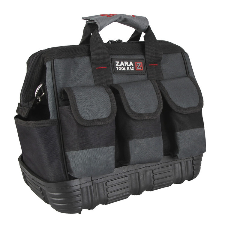 کیف ابزار زارا مناسب برایافرادی که در طول روز زیاد کیف ابزار حمل میکنند و برای واحد های صنعتی کوچک و سرویس کاران با حجم ابزارآلات کم هستش.این کیف مقاوم در برابر آب است و تولید شده از دو لایه درونی و بیرونی برزنتی و جهت استحکام بیشتر کف این کیف دارای کف لاستیکی می باشد، درای 8 جیب داخلی و 8 جیب خارجی است. این کیف دارای قابلیت متصل شدن بند رودوشی مقاوم را داراست.