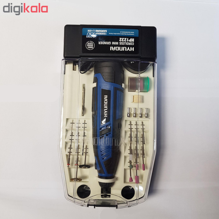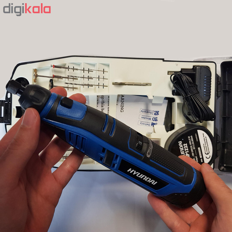 از فرز مینیاتوری جهت کارهای ظریف فرزکاری و با دقت بالا از قبیل مجسمه سازی، تراشکاری و قالب گیری، ساخت کاردستی، ساخت و تولید لوازم دندانپزشکی و.. مورد استفاده قرار میگیرد. این ابزار کاربردی در بازار دارای انواع مختلف همچون دیجیتال و آنالوگ یا بالوازم و بدون لوازم می باشد.فرز انگشتی مینیاتوری شارژی هیوندای مدل HP1232 یکی از این نوع فرزها میباشد که دارای ابزارهای متنوعی جهت برش ، سایش ، پرداخت ، ساب انواع سطوح میباشد. این فرز مینیاتوری با ولتاژ 12 ولت توانایی به حرکت در آوردن سری متحرک خود را بین 5000 الی 25000 دور در دقیقه را دارد. سرعت این دستگاه با استفاده از دیمر که بر روی بدنه و انتهای دستگاه قرار گرفته است که میتوان آن را در 6 حالت مختلف تنظیم کرد و زمان شارژ باتری بین 3 تا 5 ساعت می باشد. در طراحی این محصول جایگاه کلید پاور در زیر فرز انگشتی و در درون محفظه مخصوص قرار گرفته تا در هنگام کار با ابزار به صورت ناگهانی دست با کلید پاور برخورد نکند. به همراه این محصول 50قلم ابزار کاربردی عرضه میشود.بدنه این دستگاه خوش دست و ارگونومیک، دارای روکش نرم ضد لغزش و ضد تعریق جهت راحتی کاربر در استفاده طولانی مدت است. همچنین بدنه این دستگاه دارای عایق دوبل و از جنس PA6+GF30 که بهترین مواد جهت ساخت بدنه ابزار آلات برقی هست استفاده شده است.