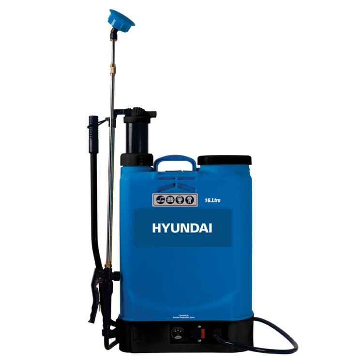 سمپاش شارژِ هیوندای مدل HP1690 . این دستگاه کوله ای می باشد که می توان هم به صورت شارژی و هم دستی استفاده کرد. لانس دستگاه از جنس استیل می باشد و بدنه آن از جنس پلاستیک فشرده می باشد. دارای مخزن 16 لیتری می باشد، دستگاه از باطری 12 ولت 1.5 آمپر بهره می برد،آمپر خروجی بین 1تا 5.5 آمپر است. فشار خروجی 1.3 لیتر بر دقیقه می باشد.