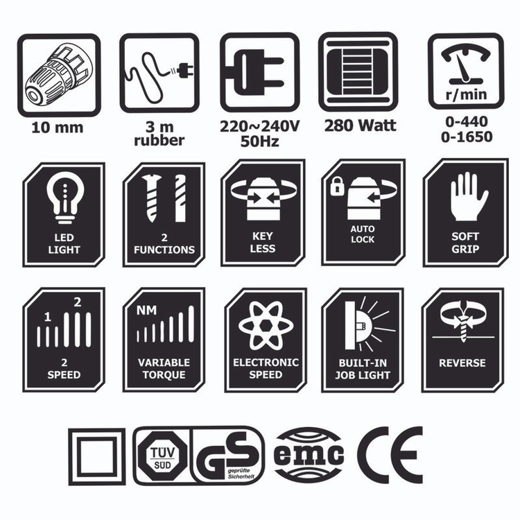 شرکت «کنزاکس» (Knzax) چند مدل پیچگوشتی برقی و شارژی را عرضه میکند که مدل KDD-1280 یکی از این محصولات است. این دستگاه یک پیچگوشتی برقی محسوب میشود. موتور این ابزار 280 وات قدرت دارد و سرعت گردش این موتور بین 0 تا 1650 دوربردقیقه تغییر میکند. با توجه به استفاده از گیربکس صنعتی دو سرعته قابلیت انتخاب گری برای دور کند 0 تا 440 دور بر دقیقه ؛ دور تند 0 تا 1650 دور بر دقیقه در گشتاورهای مختلف متناسب با متریال در اختیار کاربر میگذارد . با تهیه انواع سریهای پیچگوشتی و اتصال آن به دستگاه میتوانید از این ابزار استفاده کنید. قابلیت گردش به هر دو جهت برای باز کردن یا بستن پیچ، برای این محصول در نظر گرفتهشده است. وزن این مدل به حدود 1.1 کیلوگرم میرسد. لازم است بدانید دریل پیچگوشتی کنزاکس مدل KDD-1280 دارای کابلی با طول 3 متری با روکش ضخیم پلاستیکی (Rubber) میباشد . همچنین در بسته بندی KDD-1280 یک جفت ذغال یدکی ئیزارایه شده است با توجه به استفاده از موتور صنعتی طراحی این دستگاه بگونه ایست که جهت تعویض ذغال ها نیاز به باز کردن پوسته دستگاه نخواهید داشت. دریل پیچگوشتی کنزاکس مدل KDD-1280 دارای بلبرینگ حرفه ای و کلید گازی ضد غبار و اهرم انتخاب وضعیت چپگرد و راستگرد مطابق با استاندارد های اروپا است. سیستم گردش چپگرد و راستگرد برای این محصول باعث میشود در حالت پیچگوشتی، بهراحتی پیچها را باز و بسته کنید و در حالت دریل، ورود و خروج مته را با سهولت بیشتری انجام دهید. گشتاور موتور این محصول در 18 حالت مختلف قابل تنظیم بوده و در بیشترین مقدار به 18 نیوتنمتر میرسد. با کمک قابلیت تنظیم گشتاور میتوانید میزان نیروی وارده به سهنظام را تغییر دهید. دسته این محصول با طراحی ارگونومی و روکش TPR نرم جهت جلوگیری از خستگی و لغزش و مقاوم در برابر ضربات حین کار تولید شده است ؛ این محصول به چراغ ال ای دی در انتهای دسته مجهز شده است که با تابش بروی سطح کار انجام فعل را در محیط های کم نور را نیز مقدور مینماید ؛ همچنین این محصول به آویز کمری استیل جهت راحتی کاربر حین کار مجهز گشته است. سه نظام این کالا از مدل اتوماتیک دو تکه بوده ؛ ظرفیت آن 10 میلیمتر است ؛ ظرفیت سوراخکاری آن در چوب 26 میلیمتر و در استیل 10 میلیمتر میباشد .