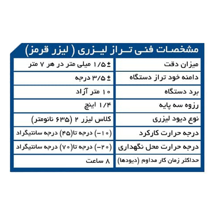 تراز لیزری کنزلکس مدل KLL-1180 یکی دیگر از محصولات شرکت "کنزاکس" میباشد. این تراز با برد 10 متر آزاد بوده و مجهز به لیزر از نوع دوم (CLASS II) بهترین انتخاب جهت سقف کاذب و پنل 3 D است . تراز لیزری کنزلکس مدل KLL-1180 با قابلیت نصب روی سه پایه با رزوه 1/4 اینچ و بدنه ارگونومیک تمام پوشیده شده از روکش نرم دارای است . این دستگاه به همراه 2 عدد باتری جهت تداوم طولانی تر کارکرد و دارای پایه آهنربایی چند کاره جهت نصب روی تکیه گاه های فلزیتراز لیزری کامپکت (افقی و عمودی) و توانایی استفاده هر کدام به صورت مجزادارای سیستم پاندولی هوشمند جهت تراز شدن اتوماتیک و خودکار با دقت بالا و نشان دادن دقیق وضعیت های غیر تراز است. مجموعه فوق در کیف حمل برزنتی به خریدار تقدیم میگردد .