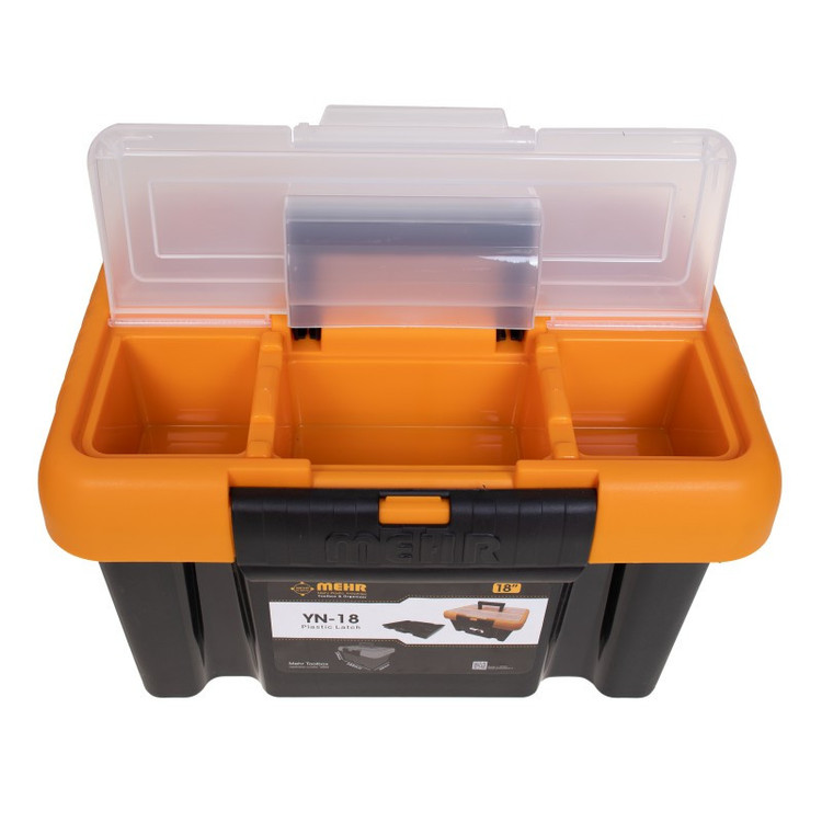 این جعبه ابزار پلاستیکی از جنس پروپیلن (PP) بسیار مقاوم و با کیفیت ساخته شده است . این مواد اولیه علاوه برکیفیت مناسب ، وزن سبک و قیمت مقرون به صرفهای نیز دارد.از ویژگیها و مزیت های این جعبه ابزار میتوان به سینی متحرک و قابل حمل آن اشاره کرد. این سینی پلاستیکی باریک که در داخل جعبه قرار گرفته، بر روی خود، قسمت های مختلفی برای نگهداری ابزار دارد و همینطور دارای یک دسته است که با کمک آن میتوان سینی را به راحتی جابجا کرد.بر روی در اصلی این جعبه نیز 4 محفظه با عمق 7 سانتیمتر به صورت در دار طراحی شده است. این 7 محفظه نیز ابعاد متفاوتی دارند و از آنها میتوان برای قرار دادن ابزارهای پر مصرف مثل پیچ و مهره استفاده کرد. دستگیره جعبه نیز حالت تاشو دارد و به خاطر همین، مزاحمتی برای کاربر ایجاد نمیکند. دستگیرهی تاشوی این جعبه ابزار 13 سانتیمتر طول دارد.جعبه ابزار مهر YN-18 مجهز به دو قفل پلاستیکی نرم و با دوام در دو طرف جعبه است که به خوبی امکان بسته نگه داشتن در را در همه حالتها فراهم آورده است.