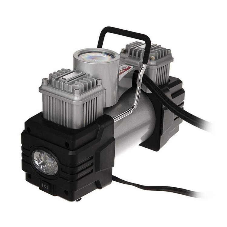 محصولی که مشاهده میکنید کمپرسور باد هیوسان مدل 2012 است با ابعادی بسیار مناسب و قابل حمل که برای استفاده در خودرو مناسب است. به کمک این کمپرسور میتوان در هر کجا که مشاهده کردید باد لاستیک خودرویتان کم شده تنها با استفاده از انرژی الکتریکی خودرو خود، لاستیک را باد کرد. این کمپرسور با توجه بهاندازهی کوچکی که دارد و وزن کم بهراحتی در گوشهای از صندوقعقب خودروی شما جای میگیرد و این امکان را به شما میدهد تا در مواقع استفاده بهراحتی و بدون هیچ سختی بتوان از آن استفاده کرد. ولتاژ ورودی این محصول 12 ولت است و از این لحاظ کاملاً متناسب با برق خروجی باتری خودرو طراحیشده است. این کمپرسور از دو سیلندر بهره میبرد و هوای خروجی آن 150 پی اس آی است و از این نظر از قدرتی معقول و مناسب برای کارهایی نظیر بادکردن لاستیک خودرو، توپ، قایقهای بادی و ... بهره میبرد.
