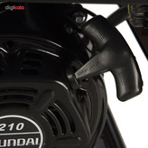 محصولی که در تصویر مشاهده میکنید، موتور برق مدل «HG5360-PG» تولید شرکت کرهای «هیوندای» (Hyundai) است. این موتور برق با بنزین کار میکند و قادر است برق 12 و 230 ولت تولید کند. این محصول دو خروجی برق 230 ولت دارد و با درپوشی پلاستیکی از پریز در برابر رطوبت و گردغبار محافظت میکند. خروجی برق 12 ولتی این ژنراتور نیز شدتجریانی برابر 8.3 آمپر دارد. توان خروجی موتور برق فوق مقداری بین 2700 تا 3000 وات است. صدای حاصل از فعالیت این دستگاه 70 دسیبل بوده که برای موتور برقی با این توان، میزانی قابلقبول است. حجم موتور ژنراتور فوق 212 سیسی است و توانی برابر 3.6 اسب بخار دارد. این موتور از نوع چهارزمانه بوده و برای روشنکردن آن هندلی دستی روی دستگاه تعبیه شده است. ظرفیت مخزن سوخت و روغن این دستگاه نیز بهترتیب برابر 15 و 0.6 لیتر است.