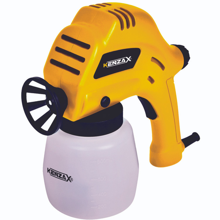 درصورتیکه در نقاشی و رنگ کردن سطوح، مهارت بالایی ندارید میتوانید از ابزاری استفاده کنید که این نقطهی ضعف شما را بپوشاند. این ابزار پیستوله برقی نام دارد که به شکلی مناسب رنگ را بر روی سطوح میپاشد. پیستولهها انواع مختلفی دارند و محصولی که در تصویر مشاهده میکنید یکی از این ابزارها است که با عنوان «KSG-1100» در بازار شناخته میشود. این پیستوله محصولی جدید از شرکت «کنزاکس» (Kenzax) است و توانی برابر 100 وات دارد. این محصول دارای یک مخزن با حجم 800 سیسی است که در قسمت زیرین نازل قرار میگیرد و برای نگهداری رنگ موردنظر تعبیه شده است. این پیستوله با اتصال به برق 220 ولت شروع به کار میکند و ترکیبی از رنگ و هوای تحتفشار را از نازل 0.8 میلیمتری خود به سمت سطح موردنظر به شکلی یکنواخت اسپری میکند. حداکثر دبی خروجی این پیستوله 300 میلیلیتر در دقیقه است و وزن مناسبی برابر 1.7 کیلوگرم دارد. از دیگر مزایای پیستوله میتوان به رنگ کردن سطوحی که دور از دسترس هستند اشاره کرد. پیستولهی «KSG-1100» طراحی مناسبی دارد و کاربر بدون احساس خستگی میتواند مدتزمان زیادی را با آن به رنگآمیزی بپردازد. این کالا بهترین انتخاب جهت مصارف عمومی و خانگی میباشد. قابلیت پوشش یکنواخت با حداقل مصرف رنگ و بهره برداری لز سیستم پاشش سولنوید با کمترین هزینه نگهداری از دیگذ مزایای کالای فوق میباشد . از مزایای دیگر این پیستوبه میتوان به طراحی ساده نازل جهت تسهیل نظافت پس از اتمام کار اشاره نمود . این پیستوله دارای پیچ تنظیم شعاع پاشش رنگ میباشد .