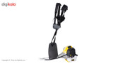 ابزاری را که مشاهده میکنید، داس موتوری (Kenzax) «کنزاکس» است که تحت عنوان مدل (KBC-152) در بازار موجود است. از این دستگاه برای بریدن چمن و سایر علفها و گیاهان استفاده میشود. این محصول دارای موتور دو زمانه با قدرت 1450 وات است و منبع تغذیه آن بنزین است که بهصورت ترکیبی از بنزین و روغن مورد استفاده قرار میگیرد. ظرفیت مخزن آن 1.2 لیتر و طول میله آن 63 سانتیمتر است. اقلام همراه این ابزار عبارتند از: دفترچه راهنما، مخزن سوخت، تیغه 3 لبه فلزی، آچار آلن، آچار پیچگوشتی مخصوص، قرقره و کمربند جهت آویزان کردن روی دوش و حمل و نقل آسان. این محصول دارای بدنه خوشدست با طراحی ارگونومیک و عایق دوبل است. داس موتوری کنزاکس دارای سیستم استارت سریع جهت روشن شدن سریع و آسان دستگاه است و سرعت در حالت آزاد آن 3200 دور در دقیقه است. همچنین ضخامت برش تیغه این ابزار 320 میلیمتر است.
