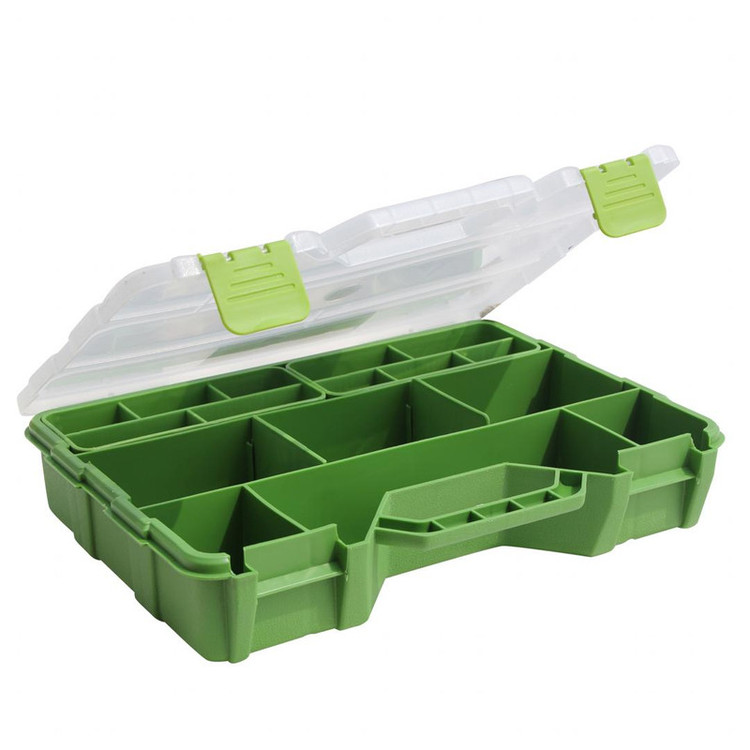 جعبه ابزار پلاستیکی براوو مدل BT-7801 که به جعبه اورگانایزر معروف است. ابعاد جعبه به طول 32 ، عرض 24 و ارتفاع 6 سانتی متر می باشد. این محصول مقاوم در برابر ضربه بوده و تولید شده از بهترین مواد اولیه می باشد. همچنین دارای قفل های پلاستیکی مقاوم و نشکن و نیز ساختار مناسب با بیشترین ظرفیت فضای داخلی می باشد. دارای بیست محفظه داخل جعبه می باشد که توسط جدا کننده های افقی و عمودی سایز این محفظه ها قابل تغییر است.