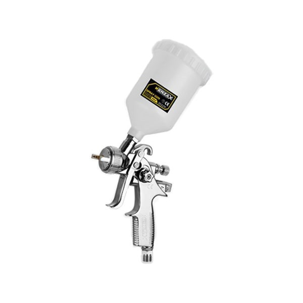 پیستوله حرفه ای کنزاکس مدل KSG-2000 ،این پیستوله سه تنظیمه بوده که طراحی آن به گونه ای است که پاشش و میزان ورودی و خروجی رنگ را می توان تنظیم کرد.جنس بدنه از آلمینیوم با آبکاری کروم نیکل است که طراحی آن به گونه ای است که هنگام استفاده طولانی مدت دست رو خسته نمی کند،کاسه آلمینیومی با ظرفیت 600 میلی متر است،سوزن ونازل از جنس استیل ضدزنگ است
